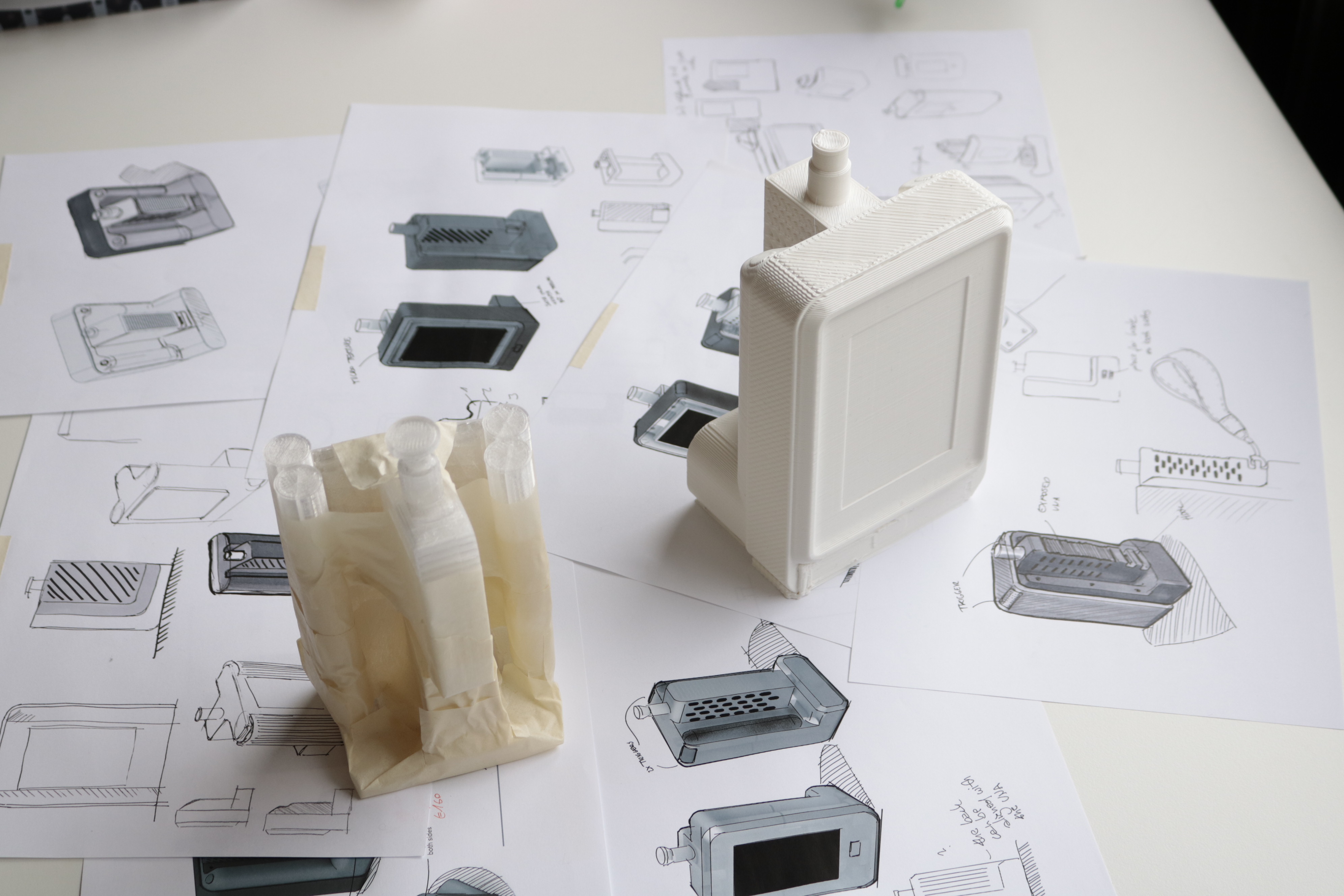 These early prototypes are often made from a mix of 3D printed elements, existing parts borrowed from other products, glue and paper - whatever is quick and easy.